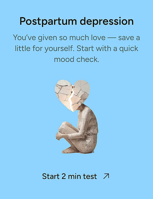More serious symptoms can include thoughts of harming yourself or your baby, or feeling like your baby would be better off without you. Taking a postpartum depression symptom test can help you recognize which of these experiences may be affecting you and whether additional support could be helpful.